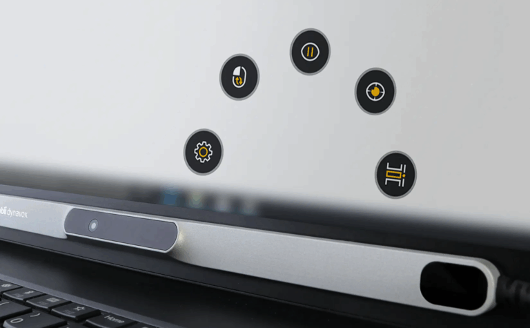 WindowsのノートパソコンやPC用ディスプレイに取り付け、USBケーブルで接続するだけで、視線入力ができるようになるツールです。ユーザーは画面上の文字やアイコンを「ただ見るだけで」、文字を書いたり、インターネットをしたり、メールを出したりできます。